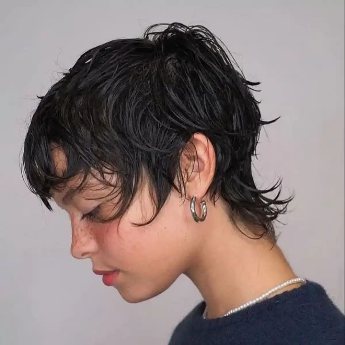 O pixie mullet texturizado é uma opção que destaca a textura dos fios, ideal para quem possui cabelos ondulados ou cacheados.
