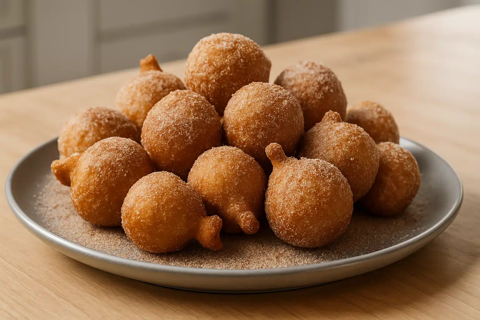 Assim que estiverem prontos, retire com uma escumadeira e coloque sobre papel absorvente, retirando o excesso de gordura. Misture canela e açúcar em um prato e passe os bolinhos já mornos nessa mistura, envolvendo completamente na cobertura aromática. Sirva ainda quentes para realçar a maciez.