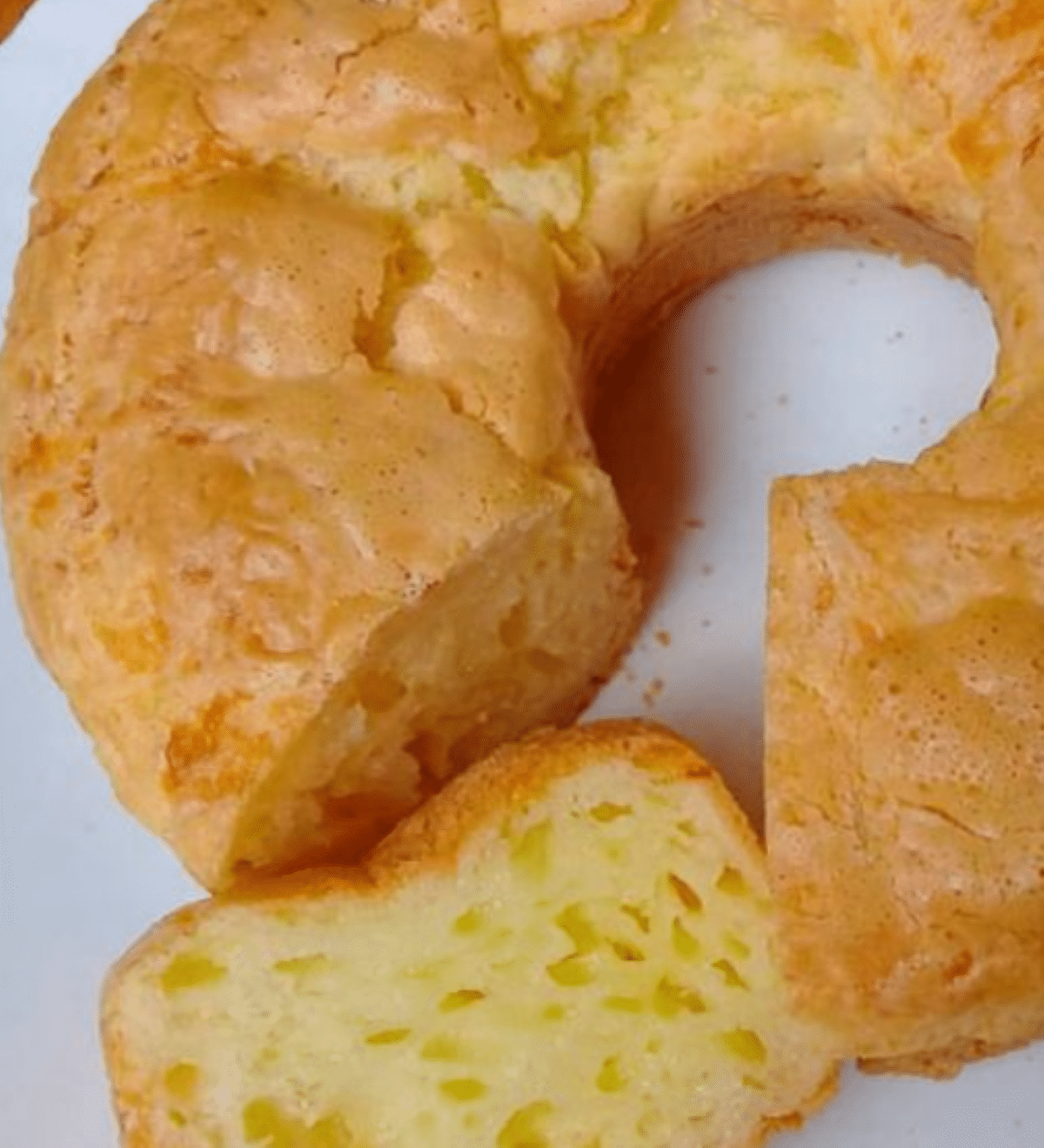 Esses ingredientes simples se transformam em uma massa leve e aerada, que resulta em um bolo crocante por fora e macio por dentro.