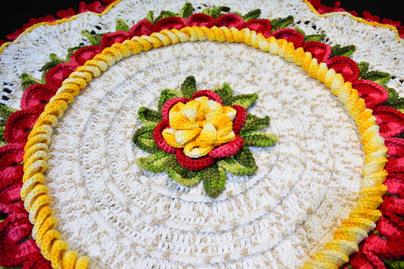 Após concluir o padrão central, é hora de expandir o centro de mesa até atingir o tamanho desejado: