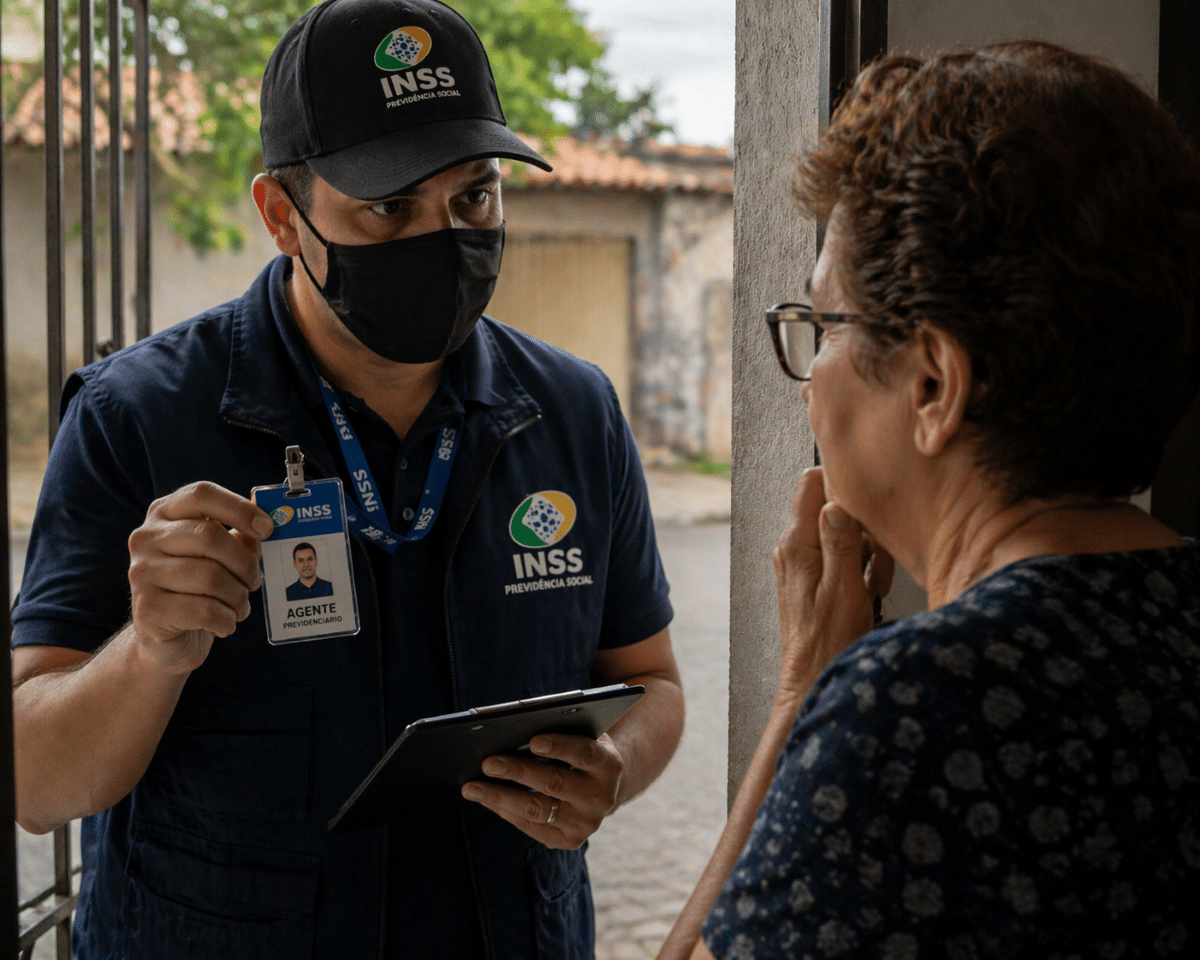 - Visita sem agendamento prévio: o INSS sempre comunica visitas legítimas com antecedência pelos canais oficiais — Meu INSS, Central 135 ou agência presencial. Nenhum servidor aparece sem avisar.
