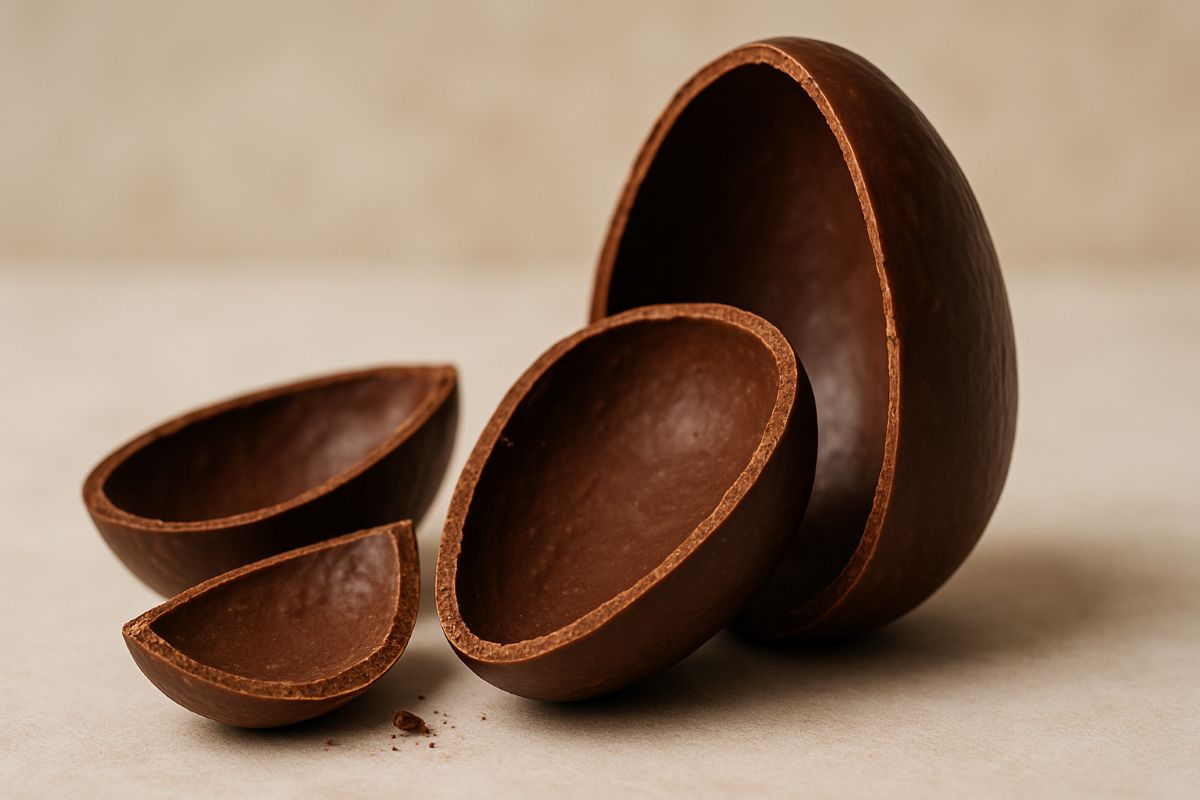 Versão Fit: use chocolate 70% cacau para as cascas e recheie com creme de abacate batido com cacau em pó e adoçante natural. Essa opção reduz o açúcar adicionado, mantendo o sabor intenso de chocolate.