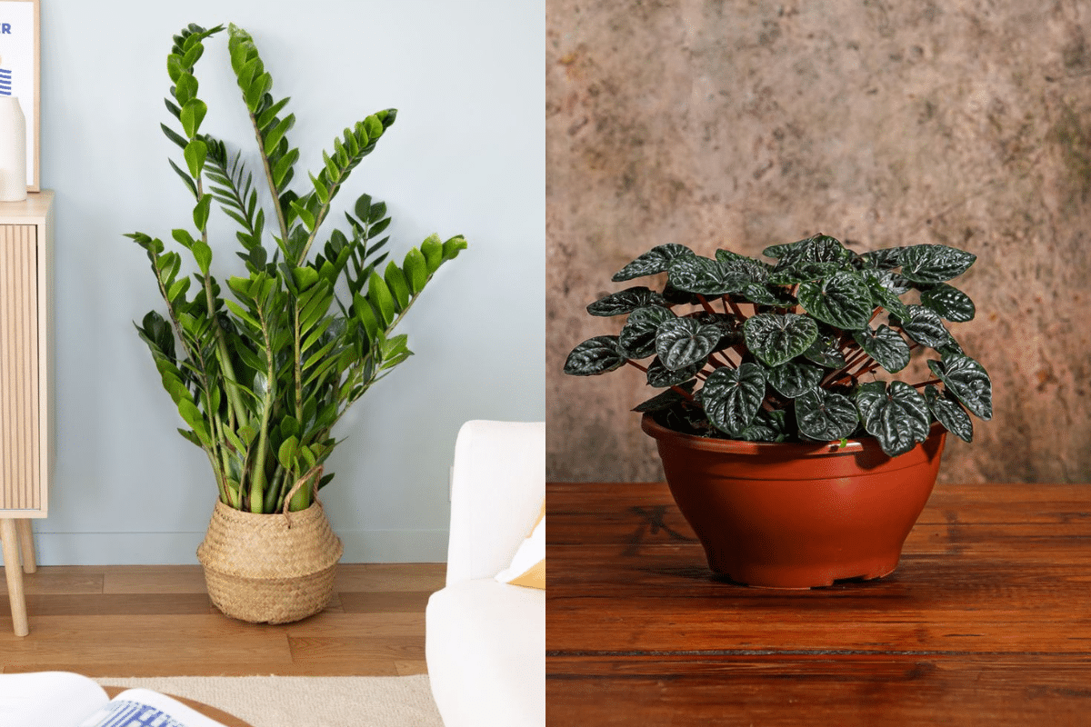 - Zamioculca: perfeita para ambientes fechados, tolera longos períodos sem rega e baixa luz.