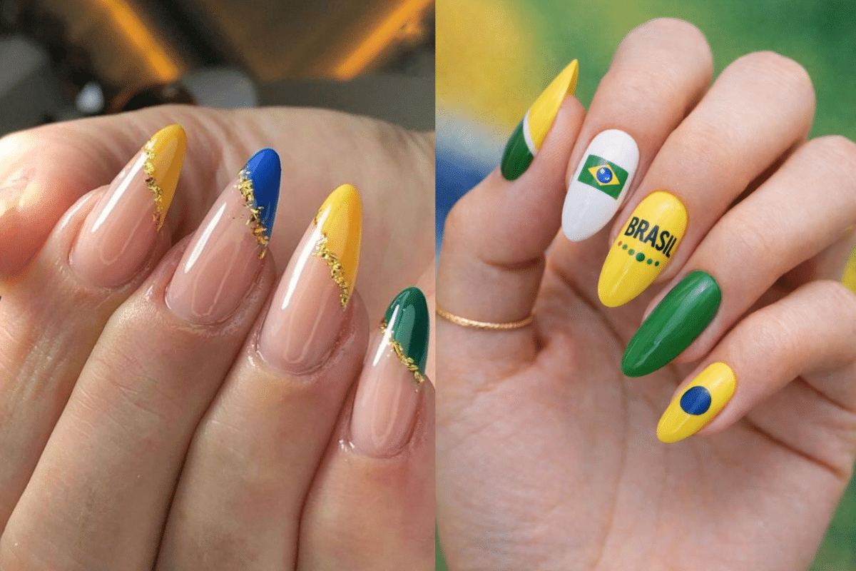 Clássicos do futebol brasileiro, verde e amarelo ganham toques modernos em versões sofisticadas. Misture os dois em francesinhas, degradês suaves ou detalhes dourados. O resultado realça o orgulho nacional sem pesar no visual.